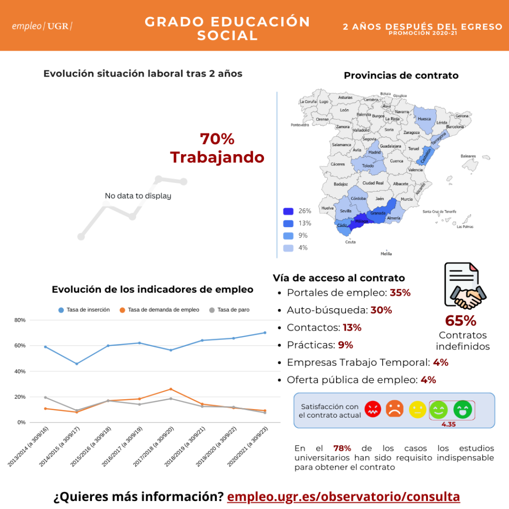 Es por ello, que te acercamos información detallada de la realidad actual del mercado de trabajo. Aquí te presentamos algunas herramientas: a través del Servicio Público de Empleo Estatal podrás conocer información mensual del mercado de trabajo de las personas tituladas, informes estadísticos, tendencias, evolución de la demanda por titulaciones… La Consejería de Empleo, Empresa y Trabajo Autónomo, te ofrece igualmente datos sobre Andalucía, situación de los sectores que generan empleo, y datos muy concretos sobre nuestra comunidad.